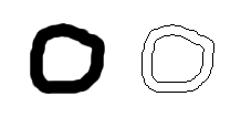 tracing the borders or boundaries of, in this case, a binary image. The two images below illustrates what the algorithm does with a pure black and white/binary image.